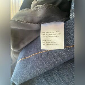 Dark blue denim skirt with pockets and brown thread seams as a detail, skirt with lining with gentle use in excellent condition