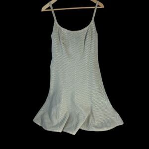 This dress measures 17" laid flat at underarms, waist area is 15" and length at flared hemline is approximately 40". In very good pre-owned condition. Normal wear and tear noted, but no flaws or damage. Please review pictures and feel free to ask any questions or for more pictures prior to purchasing.