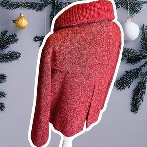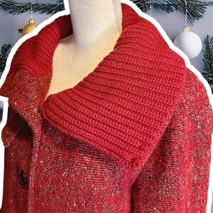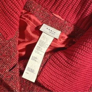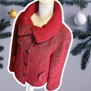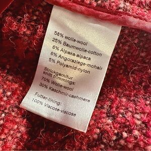 Akris Punto RARE Red Wool & Mohair-Blend Button-Up Coat with Cashmere Knit Trim