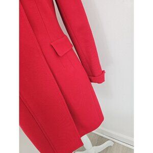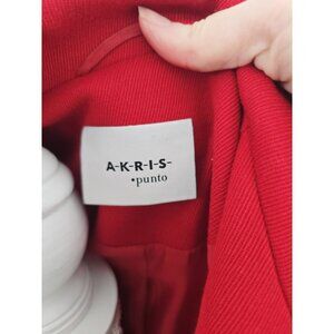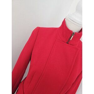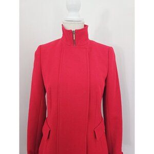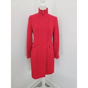 Akris Punto Red Wool Stand Up Collar Zip Knee Length Lunrd Coat Small 6 S