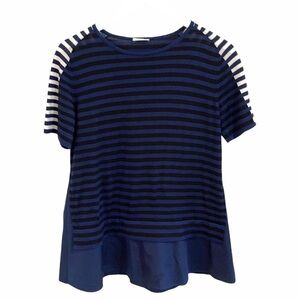 Akris Punto Short Sleeve Mixed Stripe Peplum Top SZ 6