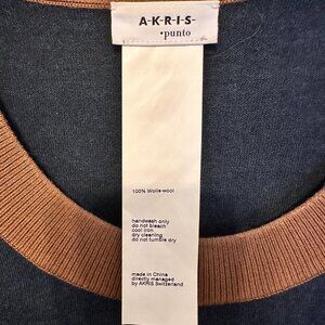Short sleeved Akris Punto sweater. Navy with brown trim. 100% wool. Originally purchased at Saks Fifth Avenue.
