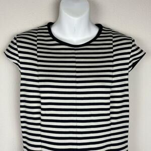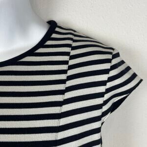 Elevate your wardrobe with this Akris Punto black and white striped mini dress in size 8. Featuring a tiered ruffle flounce hem, cap sleeves, and a back zip closure, this dress exudes modern sophistication with a playful edge. Crafted from 100% cotton with a lined interior and raw hem detail, this high-fashion piece is perfect for chic casual outings, resort wear, or elevated day-to-night styling.