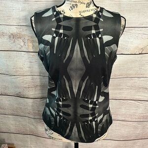 Akris Punto Sleeveless Top Overlapping Handprints Size 12 Fitted Silhouette