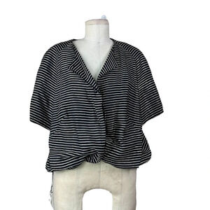 Akris Punto Top Blouse Short Sleeve Cinched Bungee Striped Black Gold Size US 12