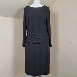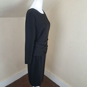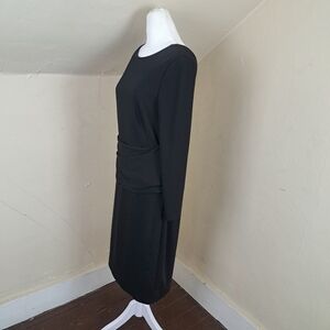 Akris Punto Womens Black Crew Neck Drape Detail Long Sleeve Shift Dress Size 8
