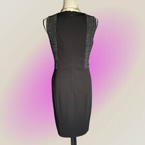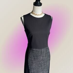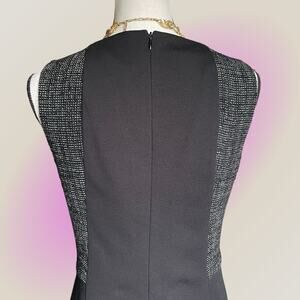 Elevate your wardrobe with the Akris Punto black wool blend and tweed midi shift dress. Designed for women who appreciate a blend of classic and modern style, this dress features a colorblock pattern. It’s ideal for formal occasions, business meetings, or sophisticated workwear. Its round neck and sleeveless design make it a versatile piece for layering. Fully lined, back zip & stretch this size 8 midi dress ensures a flattering fit making it a staple for your office or formal collection. Originally $1800 Sold at Neiman Marcus and other high end dept stores.