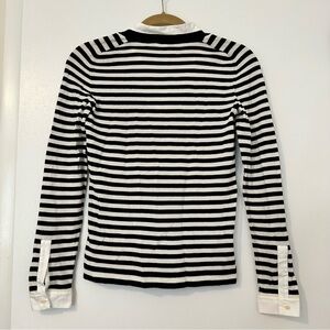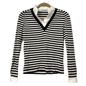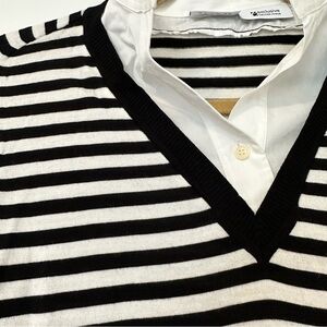 Features: this too gives you the look of a Sweater layered with a crisp white button down shirt but without the bulk. Wool Sweater with cotton collar and cuff details