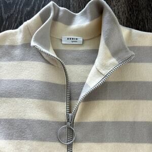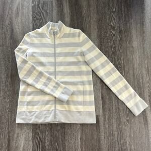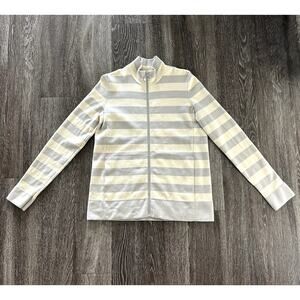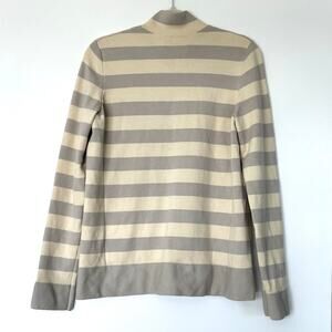 Akris Punto Wool Zip Sweater Jacket US 10 Gray Beige Striped Mock Neck Designer