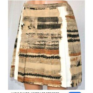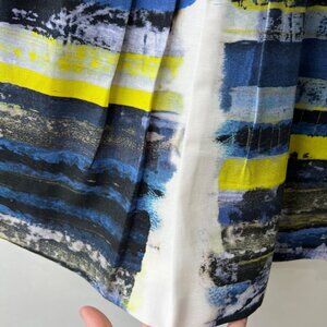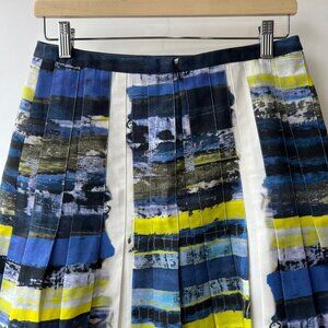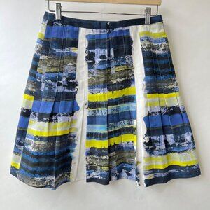 Akris Punto abstract prints aline skirt, blue/cream, yellow, Size 8