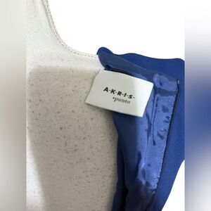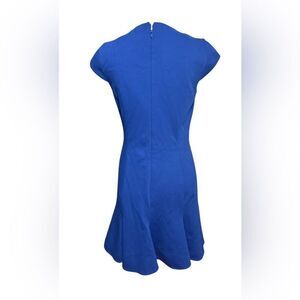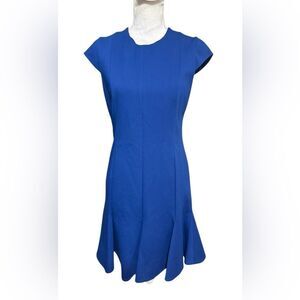 Akris Punto blue sheath drop waist pleats cup sleeve dress size 8