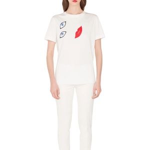 From the 2019 Portrait Collection, new Akris T-shirt top in cotton crew neck jersey with applied portrait detail.