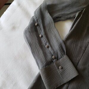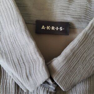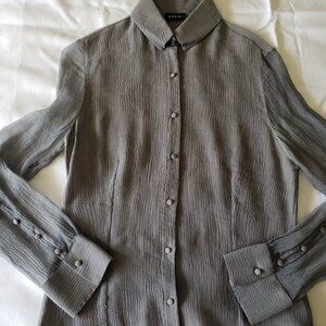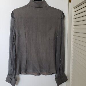 Akris Silk Semi Sheer Crinkled Button Down Long Sleeve Shirt Gray Blouse Size 10.