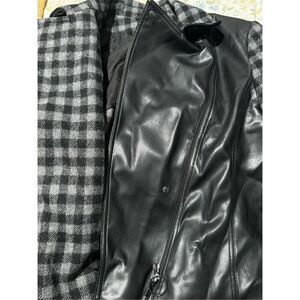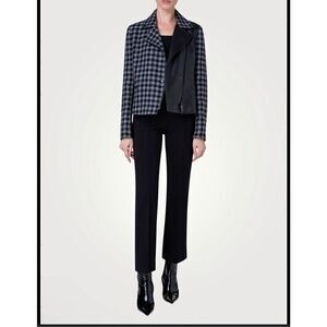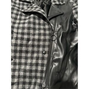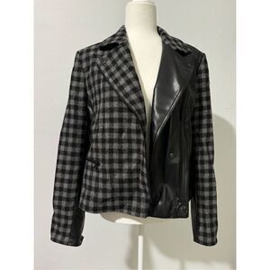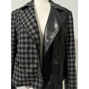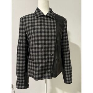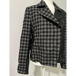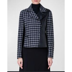 Akris punto mixed tweed gingham moto jacket vegan leather. Wool zipper front stunning jacket 8