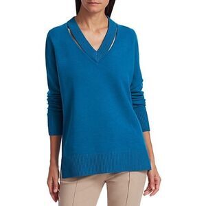 Relaxed in silhouette, this elevated basic flaunts bold neckline cutouts and a casual step hem.