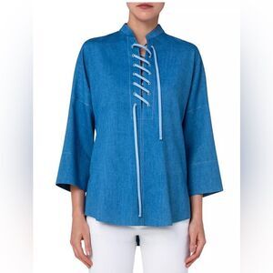 Akris punto Washed Denim Laced Blouse size 6