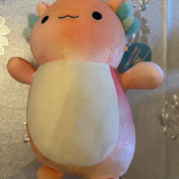 Adorable plush axolotl toy with a soft, colorful design. Perfect for cuddling. Displayed/stored only.