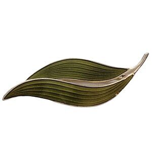 This Modernist-designed Aksel Holmsen Leaf Brooch displays great craftsmanship, making it a wonderful addition to any collection. It features a Leaf Brooch Pin crafted from Sterling silver, with beautifully well-executed Guilloche green enamel on the front surface with gold over sterling silver edges. It measures approximately 2.2 inches in width and almost an inch in length. The back is marked NORWAY STERLING 925 S and Aksel Holmsen maker's mark, a renowned Norwegian silversmith. It is secured with a C-clasp locking pin which is sturdy and fixed, ensuring that the brooch stays firmly in place when worn. It is known that Holmsen's pieces are from the early 20th century and the mid-20th century and are highly sought-after and collected.