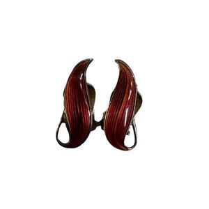 Aksel Holmsen Norway Vintage Red Guilloche Enamel Sterling Silver Vtg Earrings