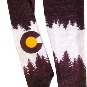 Aksels Colorado Flag Leggings Forest Print Burgundy Athletic Fit Medium