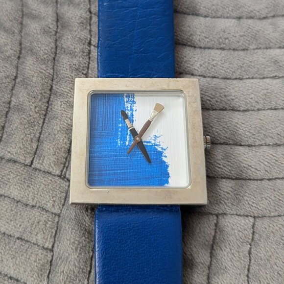 Artistic and cubist. The watch hands are brushes. Designed by Jean-Christophe Marechal. For the creative in your life that likes to show a little flair.