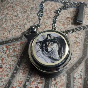 Al Agnew Wolf Men's Pocket Watch Silver Tone With Chain & Clip Needs New Battery