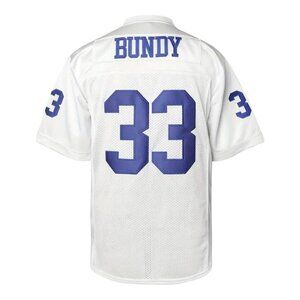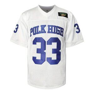 Polk High School Football Jersey is a stylish tribute to the iconic character from the beloved television show "Married... with Children." This jersey features the classic Polk High School jersey design, complete with the number 33 stitched prominently on the front, symbolizing Al Bundy's legendary football career. Made from 100% polyester, it ensures comfort and durability, making it perfect for young fans who want to showcase their team spirit while enjoying a lightweight fit. The vibrant colors adds a striking touch, making this jersey a must-have for any enthusiast of the show or football alike.