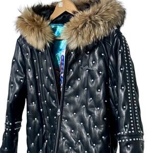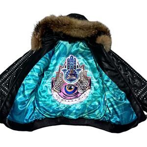 Al Wissam Studded Fur-Collar Women's Leather Jacket Size L/XL
