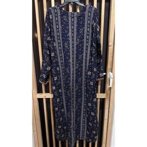 Al-Batool Maxi Dress Womens 2XL Navy Blue Embroidered Boho Kaftan Print Modest