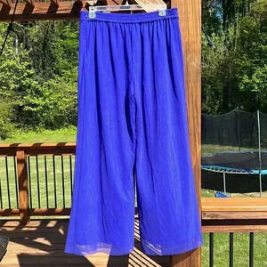 Our new Antonia pant in regal blue is an airy mesh style cut in a comfortable full leg layered over spandex. It's not only travel-friendly, but destination-ready, wherever your day takes you.