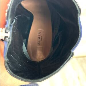 Alaïa Paris ankle boots, women’s size 8 designer booties, blue suede ankle boots, black leather studded boots, Alaïa designer shoes, luxury ankle booties, women’s studded suede boots, Paris designer footwear, Alaïa collectible boots