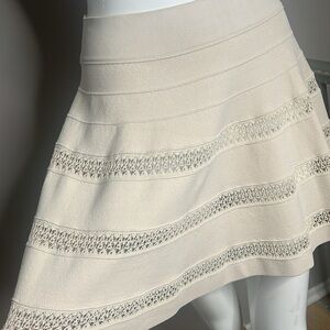 Alaïa Sz S Cream Knit Elastic Waist Skater Mini Skirt