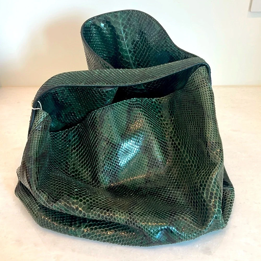 Alaïa bag in green python with wide mouth opening. Comes with matching interior small zip bag and mirror. Comes with dust bag.