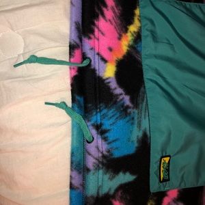 Super warm! Giant front pocket with velcro and zipper. Bottom and hood can be tightened.