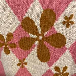 Alab vest with fun retro pink and brown print