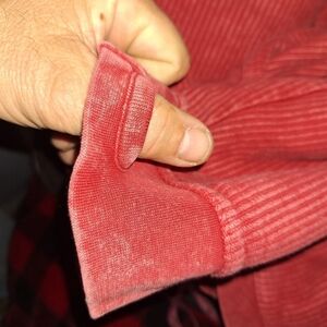Show your team spirit with this vibrant red Alabama 100% cotton cozy corduroy sweater. It's in a women's size XL. It features thumb holes and a distressed look. Perfect for any fan, this cozy piece is a must-have for your wardrobe.