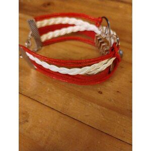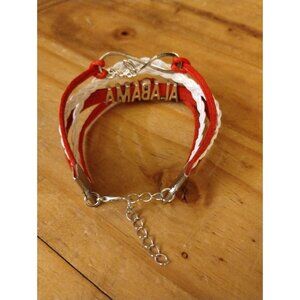 Alabama Football Charm Bracelet | Rope Braided Love Sports Dangle Bracelet in White and Red