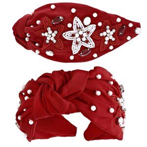 Alabama Roll Tide Crimson Red White Star Beaded Crystal Pearl Football Headband