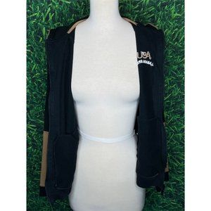 Alabama State University Hornets ASU Black Medium Full Zip Hooded Jacket HBCU. Pre-owned in good used condition. Measurements are approximate arm pit to arm pit laying flat 20”; sleeves 20”; shoulders 19”; length 21”.