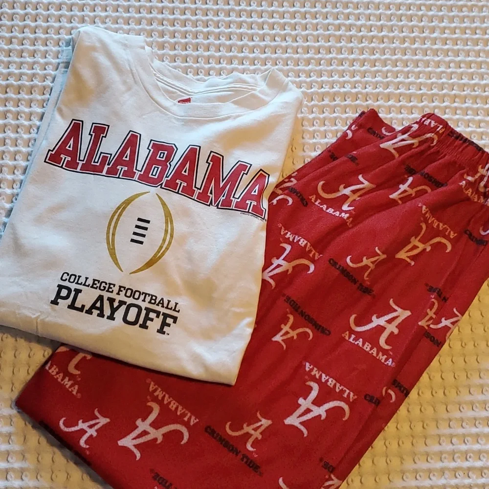 Alabama long sleeve tee. adult small. possible never worn. kid's large pj bottoms. GUC.