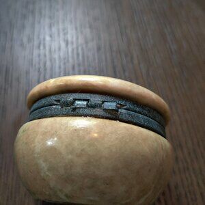 Alabaster Trinket holder handcarved Italy. Light Amber with Red and Green veins
