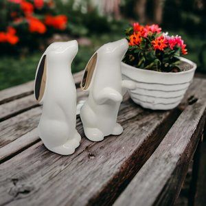 Alabaster White Ceramic Bunnies with Gold Accent Ears - Set of 2