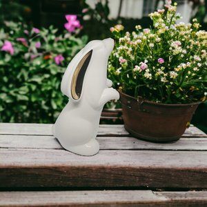 Alabaster White Ceramic Bunnies with Gold Accent Ears - Set of 2