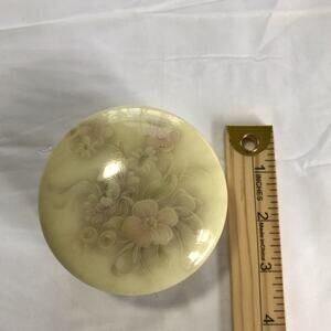 Alabaster made in Italy hand carved floral trinket small round hinged lid
