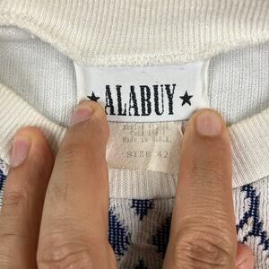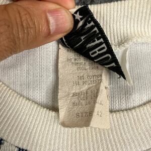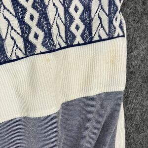 Alabuy Sweater Mens Size 42 White Navy Vintage USA Textured Knit Pullover 80s