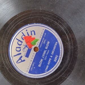 Vintage Aladdin vinyl record featuring 'Blue Moon' by Lynn Hope & Orchestra. Classic black and blue design.
