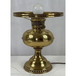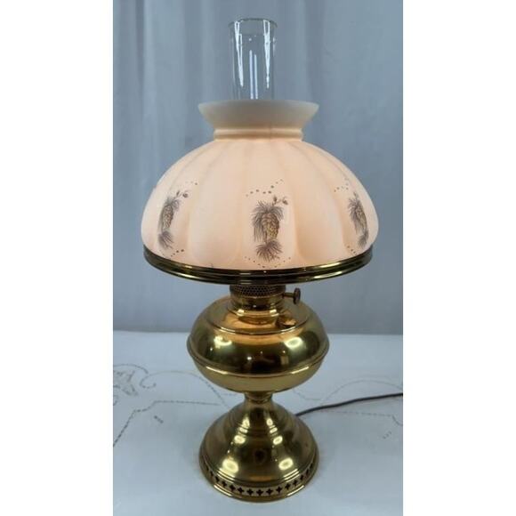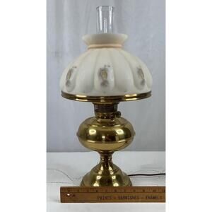Aladdin Brass Table Lamp w/ Hand-Painted Milk Glass Shade – Model Works
