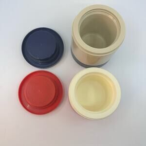 Aladdin Insulated Vintage Thermos Freezer Lid Red Blue Beige Hot/Cold 1980s