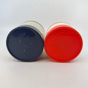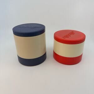 Vintage Aladdin' Insulated Thermos, Set of 2 With Freezer Lids, 80s, Beige, Red & Blue Thermos Kitchenware, Drinkware, Hot Cold Food Storage Containers