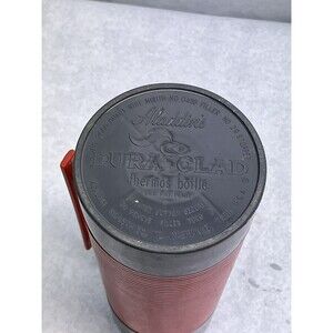1 pre owned Vintage Aladdin Dura Clad 1 Quart Wide Mouth Red Gray #2660 Thermos.